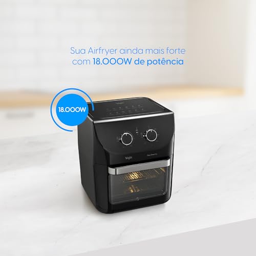 • Design prático com 12 litros de capacidade, cor preta, porta removível e luz interna para facilitar o monitoramento do cozimento
