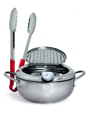 CAPACIDADE: Fritadeira profissional com volume de 4,2 litros, ideal para uso doméstico ou comercial em pequena escala • MATERIAL: Construída em aço inoxidável de alta qualidade, garantindo durabilidade e fácil limpeza • TERMÔMETRO: Equipada com termômetro integrado para controle preciso da temperatura do óleo durant…