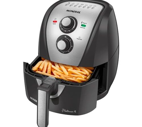 PRATICIDADE NA COZINHA: Tecnologia de Circulação de Ar Quente + alta potência possibilitam rapidez no preparo. • CAPACIDADE 4 LITROS + CESTO QUADRADO: O formato do cesto acomoda melhor os alimentos e assa por igual. • DESIGN COMPACTO: A Air Fryer Mondial tem um design compacto e ocupa espaço reduzido na bancada da c…
