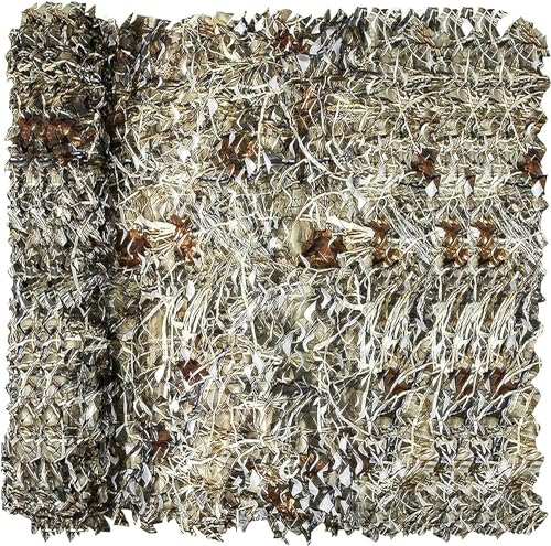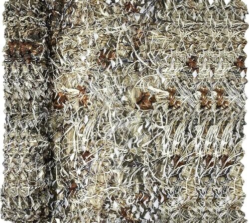 • Versatilidade de uso. Ideal para uso ao ar livre para camuflar persianas de caça, persianas de observação de fotografia de vida selvagem e pássaros, guarda-sol, cerca e toldo de jardim. Ótimo para acampar ou usar para atividades militares como paintball ou jogos Air Sofy. Pode ser usado para construir abrigos ou outras situações de camuflagem externa e interna.