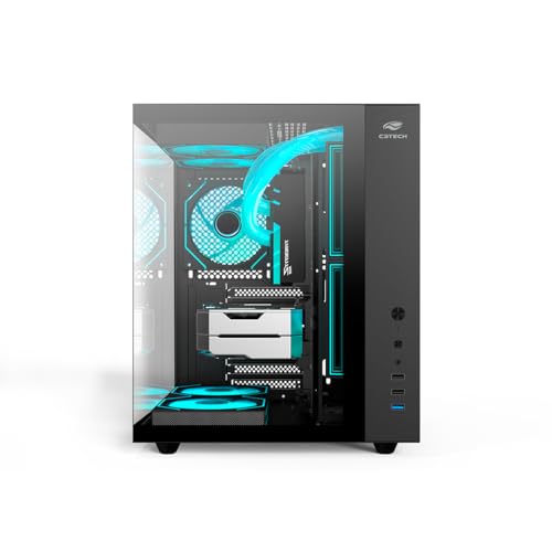 Gabinete AQUARIUS Gamer C3Tech MT-G920BK, Preto, Frontal e lateral de vidro temperado, USB 2.0 e 3.0, Conector P2 para Audio e para Microfone, Filtro anti poeira