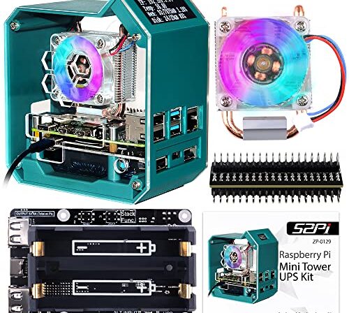 GeeekPi Capa para Raspberry Pi 4, Pi 4 Mini Torre com Cooler ICE Tower, com chapéu UPS Plus, tela OLED de 0,96 polegadas, placa de expansão GPIO 1 a 2 para Raspberry Pi 4 modelo B