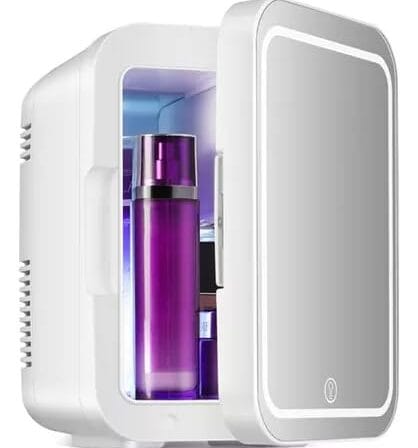 Geladeira Portátil para Maquiagem, Mini Refrigerado com Espelho, 40DB Ultra Silencioso, Controle por Toque, 10h de Resfriamento Contínuo, Ideal para Quarto, Salão e Carro