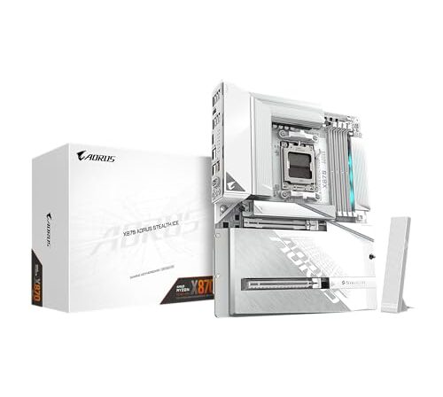 GIGABYTE Placa mãe X870 AORUS Stealth ICE AMD AM5, ATX, DDR5, 4X M.2, PCIe 5.0, 2xUSB-4, USB-C, WIFI7, LAN 5GbE, EZ-Latch