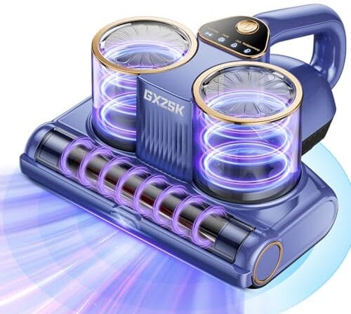 Gxzsk Aspirador de colchão, aspirador de cama 16kPa com luz UV de 253,7 nm, aquecimento ultrassônico e 60 °C, copo duplo e porta de sucção alargada, aspiradores portáteis para cama, sofá, sofá e berço
