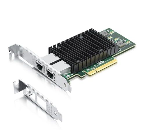 H!Fiber Placa de rede PCI-E de 10 Gb, duas portas de cobre RJ45, compare com Intel X540-T2, com chip Intel X540-BT2, PCIe X8, adaptador LAN Ethernet 10Gbase-T compatível com Windows