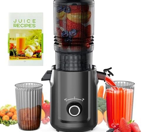 Hobsir Slow Juicer Magic: motor de 300 W + extratos de tecnologia de prensagem a frio de 7 estágios. Possui tecnologia de mastigação de baixa velocidade de 50 rpm. Isso evita efetivamente o acúmulo de calor e oxidação, maximizando a retenção de nutrientes e preservando os sabores naturais originais das frutas. • Gar…