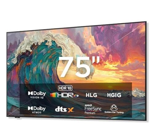 • iFFALCON Smart TV Classe QLED 4K de 75 polegadas, TV mural ultrafina, 144Hz, HDR, modo artístico com arte AI, ampla gama de cores, Dolby Vision IQ, Dolby Atmos, Google Assistant Voice Remote (modelo 75F75, modelo 2025)