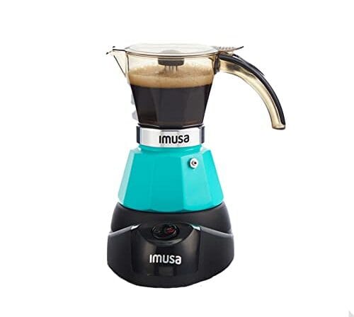 Imusa Máquina de café expresso elétrica para 3 xícaras com base destacável, azul-petróleo