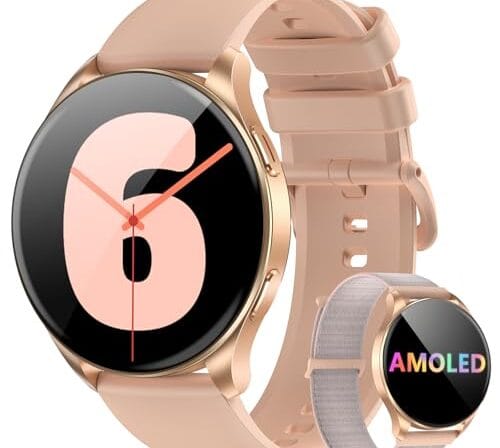 IOWODO W40 Smartwatch com Tela AMOLED 1.43″ – Relógio Inteligente Bluetooth para Chamadas, 100+ Modos Esportivos, 2 Pulseiras (Ouro)