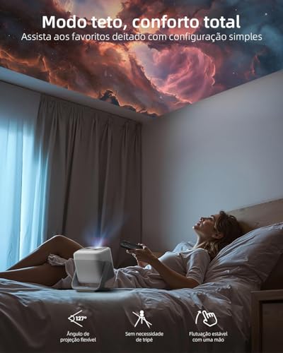 • 【Liberdade Ilimitada de Projeção】Coloque-o em qualquer lugar, projete em qualquer ângulo. O projetor inteligente JMGO oferece flexibilidade incomparável e configuração sem complicações. Na sala, no quarto ou em movimento, aproveite projeções adaptáveis e perfeitas em qualquer ambiente.