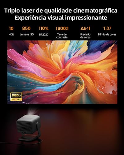 • 【Nitidez Brilhante e Visual Imersivo】Desfrute de impressionante resolução Full HD 1080P com 850 lúmens ISO, HDR10 e taxa de contraste profunda de 1600:1. Veja detalhes cristalinos e cores realistas em telas de até 200″, seja na sala de estar ou no quintal. O projetor a laser triplo JMGO transforma qualquer espaço em uma experiência cinematográfica deslumbrante.