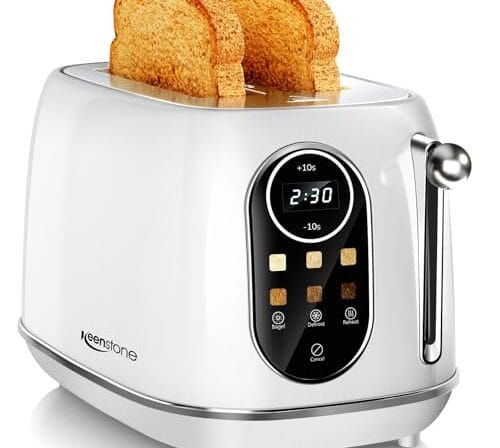 Keenstone Controle de Toque Da Torradeira, Torradeira Retrô com Tela Sensível Ao Toque, Torradeira de 2 Fatias de Aço Inoxidável, Slot Extra Largo, Recursos de Bagel, Reaquecimento, Descongelamento, C