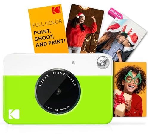 Kodak Câmera Printomatic digital, impressão instantânea colorida fotos autoadesivas 5 x 7,5 cm, Tecnologia de impressão ZINK, 5 MP, Flash, Aceita Cartão MicroSD, Verde