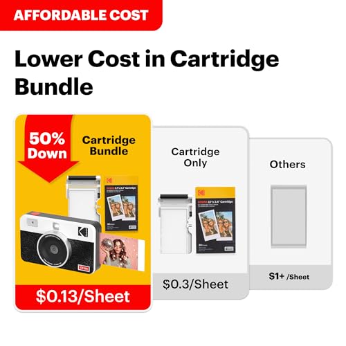 • Menor custo por foto: por que pagar mais para imprimir? Imprimir nunca foi tão fácil com nossa câmera de impressão instantânea Kodak Mini Shot 2 Retro. As fotos custam até metade do custo se compradas em um pacote de câmera de filme instantâneo, apenas R$ 3,00 por foto.
