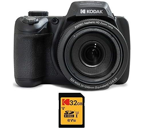 Kodak PIXPRO AZ528 Câmera digital Astro Zoom de 16 MP com zoom de 52x e tela LCD de 3 polegadas (preto) pacote com cartão de memória SDHC Classe 10 UHS-I U1 de 32 GB (2 itens)