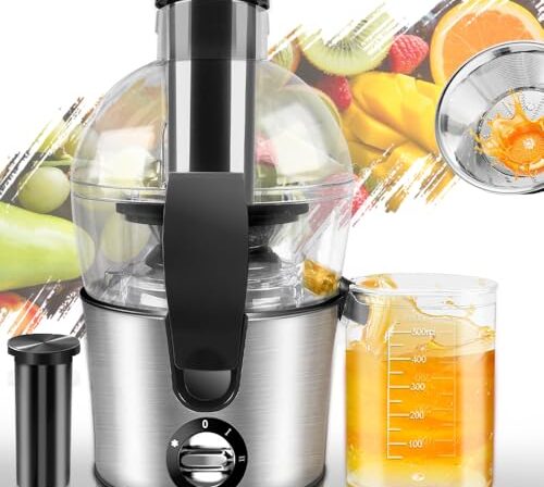 🎈- Calha de alimentação 70 mm mais larga – Equipada com um extrator de suco de grande calibre de 70 mm, permite colocar maçãs ou laranjas inteiras, aumentando significativamente a produção de suco. Toda a família pode desfrutar de um copo de suco fresco, puro, suave e sem aditivos em poucos minutos todas as manhãs. …