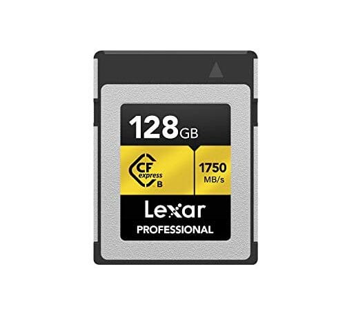 Lexar Cartão de memória profissional CFexpress tipo B de 128 GB, série OURO, até 1750 MB/s de leitura, gravação de vídeo 8K crua, suporta PCIe 3.0 e NVMe (LCXEXPR128G-RNENG)