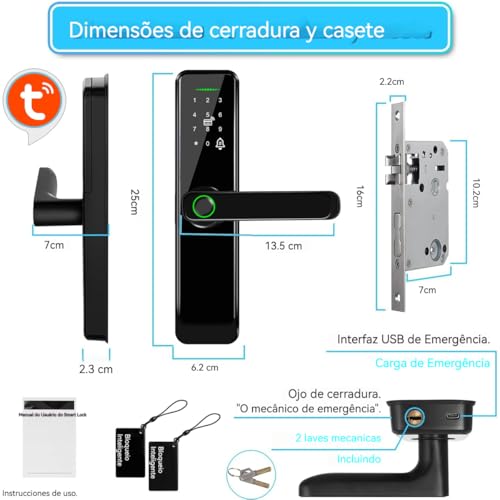 • 【Fechadura eletronica conveniente controle remoto】Experimente a máxima conveniência com essa fechadura eletronica WiFi. Não é necessária nenhuma ponte extra, pois ela tem Wi-Fi integrado que permite controlar a fechadura de qualquer lugar por meio do aplicativo inteligente Tuya. Diga adeus às chaves tradicionais e aproveite a entrada sem chave com facilidade;