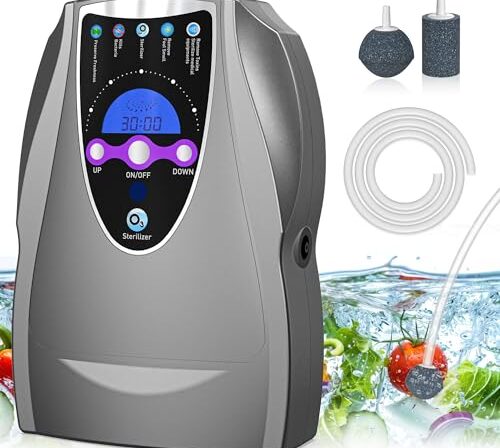 Ampla cobertura e eficiência: com uma saída de 1000 mg/h, cobre eficientemente áreas maiores, garantindo uma limpeza completa do ar e da água, ideal para salas maiores, cozinhas e escritórios. • Uso multifuncional: perfeito para tratar água, limpar utensílios de mesa e refrescar frutas, também refresca o ar, proporc…