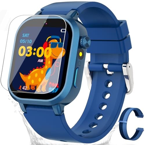 • 【Relógio inteligente multifuncional para crianças】 com monitores analógicos e digitais, câmera dupla, temporizador e pedômetro, 26 jogos de quebra-cabeça, leitor de MP3 para relógio inteligente, gravador de voz, controle parental, despertador, papéis de parede (imagem de suporte personalizada), formato de hora (12/24 horas), modo silencioso etc.