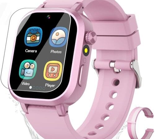 Melontti Relógio inteligente para crianças, jogos, câmera dupla, lanterna de reprodutor de música, despertador, tela sensível ao toque, presente para crianças de 3 a 12 anos (rosa)