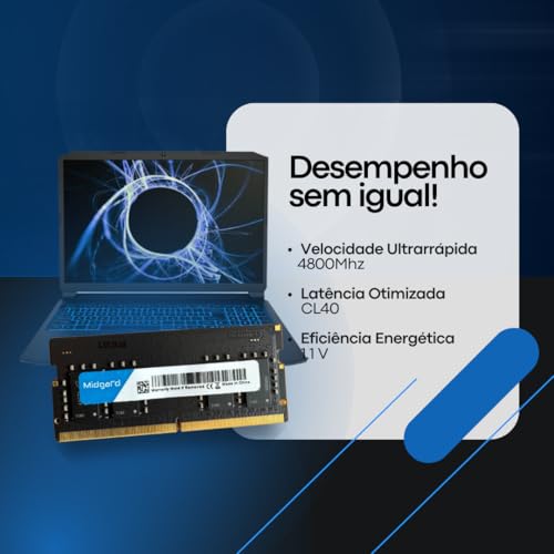 🎮 Desempenho Rápido – Com frequência de 4800MHz, a Memória Midgard garante velocidades de transferência eficientes, ideal para gamers e profissionais. • ⚡Economia de Energia – Memória de alta eficiência com 1,1V, garantindo menor consumo e maior durabilidade. • 🖥️ Alta Compatibilidade – Projetada para notebooks, a m…