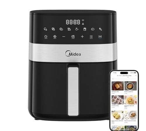 Midea Air Fryer Fritadeira 6L, 9 Menus Predefinidos, Tela de Toque LED, Desligamento Automático, Função IOT, 90% Menos Gordura, cesta Antiaderente e Prato Mais Crocante 220V/60Hz