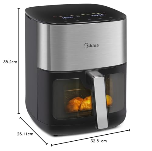 Midea Air Fryer Fritadeira 6L, 9 Menus Predefinidos, Tela de Toque LED, Desligamento Automático, Função IOT, 90% Menos Gordura, cesta Antiaderente e Prato Mais Crocante 220V/60Hz