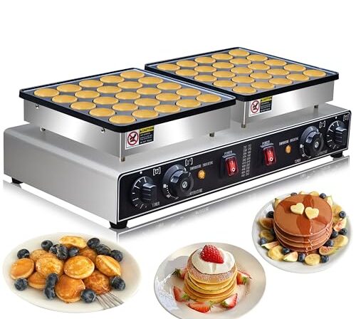 【Material premium】Esta máquina de panqueca comercial adota um corpo de aço inoxidável de qualidade alimentar de alta qualidade e uma placa de alumínio fundido antiaderente. É resistente e dura muito tempo, que também é resistente a altas temperaturas. • 【Controle preciso de temperatura e tempo】A máquina de panqueca …