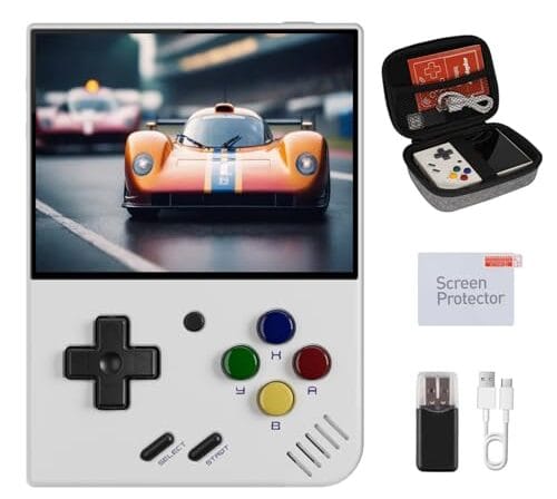 Miyoo Mini Plus, Retro Gaming Console with 64G Memory Card, 3.5-inch IPS Screen, 3000mAH Long Endurance Battery,with Storage Case, Support 10000+ Games (White 64G)