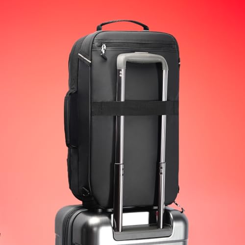 • Carregue tudo na mochila A HyperX Knight está em conformidade com as regulamentações de tamanho de bagagem de mão da maioria das companhias aéreas[1], e o design em concha simplifica a verificação de bagagem. É possível prendê-la facilmente à mala de rodinhas com a alça de bagagem integrada.