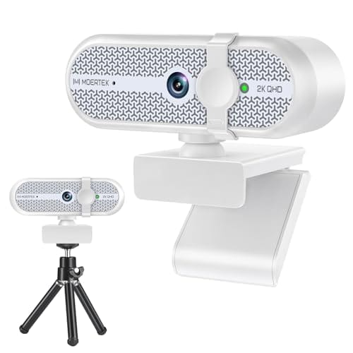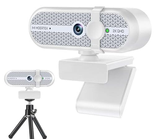 MOERTEK Webcam 2K para PC, webcam com microfone redutor de ruído, correção automática de luz, ângulo amplo de 90°, capa de privacidade embutida, suporta zoom, equipes, reuniões, Skype, perfeita para