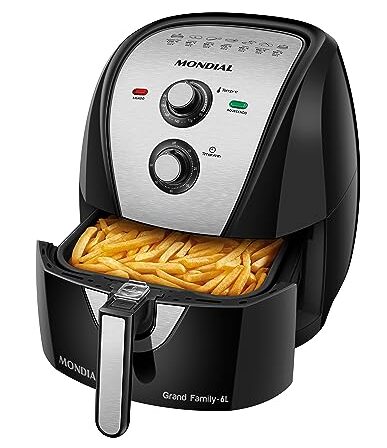 MONDIAL Fritadeira Sem Óleo Air Fryer 6L, Preto/Inox, 1900W, 110V – AFN-60-BI