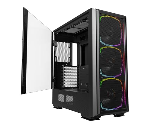 MONTECH Sky Two GX, E-ATX capa de torre média, alto desempenho de fluxo de ar, ventiladores PWM ARGB de 3 x 140 mm pré-instalados, painel de vidro temperado, malha de metal frontal – preto