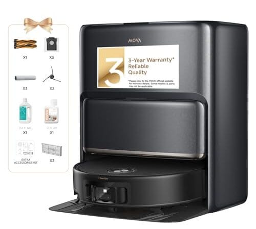 MOVA Z60 Ultra Roller Robô Aspirador e Esfregão Completo, Sucção de 28.000Pa, Rolo Flutting em Tempo Real Auto-Lavagem, Escudo Automático de Carpete, Extensível para Limpeza de Borda, Escova DuoBrush