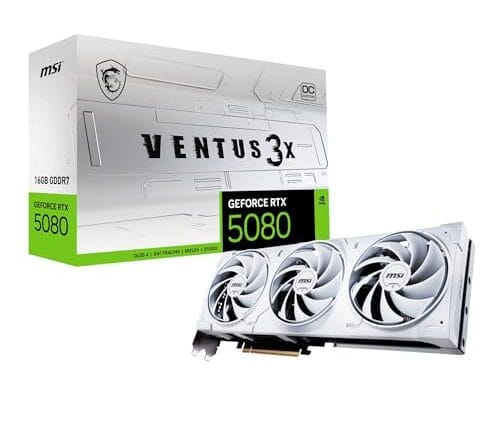 MSI Placa de vídeo para jogos NVIDIA GeForce RTX 5080 16G VENTUS 3X OC WHITE GDDR7 256bit, Boost Clock até 2655 MHz, PCIe Gen 5, DLSS 4, DP 2.1 x 3, HDMI 2.1 x 1, SFF Ready