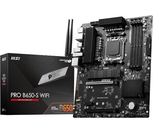 MSI Placa-mãe PRO B650-S WIFI V1 ProSeries (processadores AMD Ryzen 9000/8000/7000, AM5, DDR5, PCIe 4.0, slots M.2, SATA 6Gb/s, USB 3.2 Gen 2, HDMI/DP, Wi-Fi 6E, Bluetooth 5.3, LAN de 2,5 Gbps, ATX)