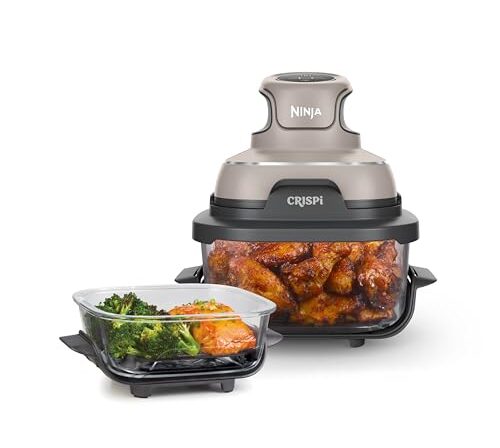Ninja Crispi Fritadeira de ar, adequada para microondas, congelador e máquina de lavar louça, sistema de cozedura portátil de vidro não tóxico, recipientes de vidro de 4 quartos e 6 chávenas com