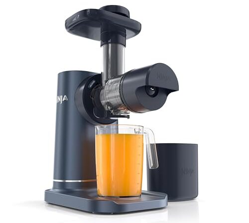 Ninja NeverClog Espremedor a frio, espremedor lento potente com controle total de polpa, bancada, elétrica, 2 funções de polpa, pode ser lavado na lava-louças, 2ª geração, azul/marinho, JC151NV
