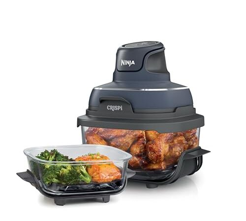 Sistema tudo em um: inclui o Ninja Crispi PowerPod, recipientes de vidro TempWare de 4 quartos e 6 chávenas e 2 tampas de armazenamento. • Powerpod CRISPI: O poder de uma fritadeira de ar em tamanho real agora na palma da sua mão. • Recipientes de lote pequenos e grandes: o recipiente de 6 chávenas cozinha uma refei…