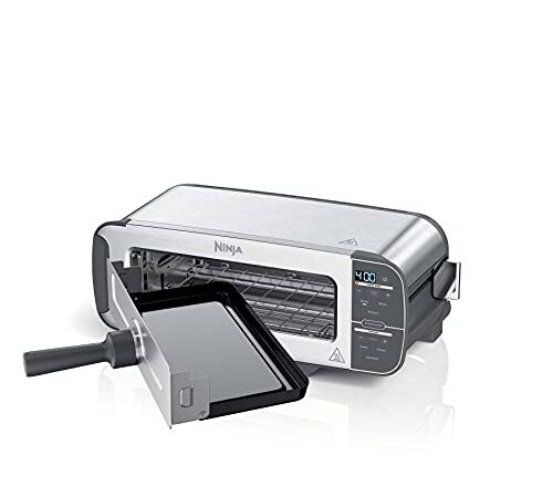 Ninja Torradeira 2 em 1 ST101 Foodi, capacidade para 2 fatias, forno compacto, máquina de lanches, reaquecer, descongelar, 1500 watts, aço inoxidável