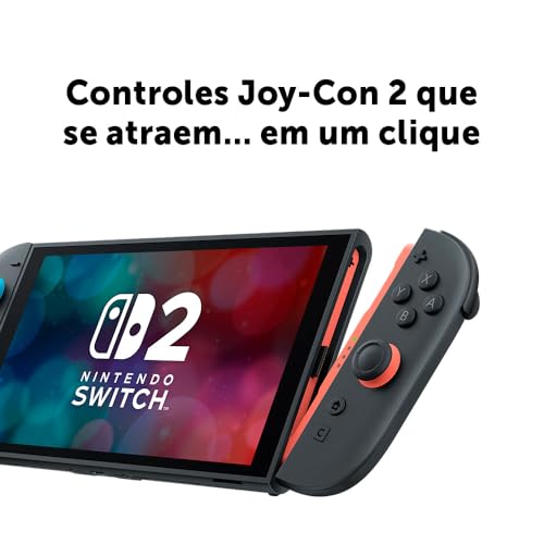 NOVO SWITCH 2. Experimente jogos com resolução de 1080p na tela do console ou até 4K na TV, com suporte a HDR e taxas de quadros de até 120 qps para cores vivas e jogabilidade suave. • CONTROLES JOY-CON 2. Encaixe os novos controles com conectores magnéticos, usando cada um como um mouse em jogos compatíveis para no…