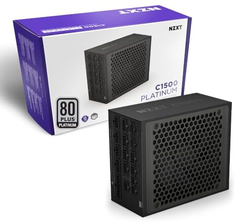 NZXT C1500 Platinum ATX 3.1 | Fonte de alimentação para jogos de PC de baixo ruído totalmente modular | 1500 Watts | 80 Plus Platinum | Conectores duplos 12V-2×6 | Modo Zero Fan | Capacitores 100%