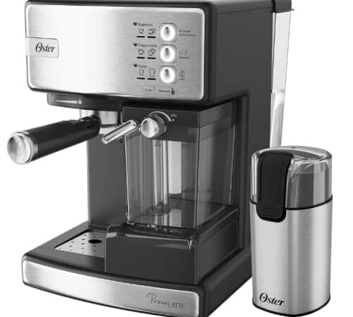 Oster Kit Cafeteira Nova PrimaLatte Inox e Moedor de Café Elétrico Inox Oster – 127V