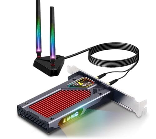 Este cartão WiFi PCI-E com luz RGB Fenvi WFi 7 BE200 traz WiFi para 6GHz, atualizando WiFi para banda tripla. Utilizando os modelos mais recentes padrão Wi-Fi 7, Tri-Band (2,4 GHz, 5,8 GHz, 6 GHz) estão disponíveis. Velocidade máxima de até 8774Mbps 2,4GHz @574Mbps, 5GHz@2400Mbps, 6GHz (320MHz)@5800Mbps. • Este cart…