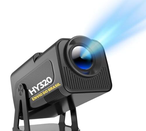 Projetor Portátil HY320 5G WIFI 6 Android 13, 4K 1080P Full HD, 12000 Lúmens, Auto Correção de Tela, 180° Giratório – Envio Brasil Premium