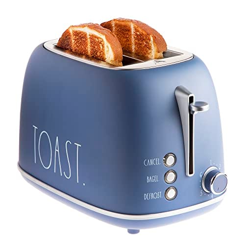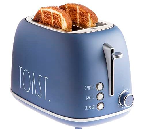Rae Dunn Retro Rounded Bread Toaster, 2 Slice Stainless Steel Toaster with Removable Crumb Tray, Wide Slot with 6 Browning Levels, Bagel, Defrost and Cancel Options (Navy)