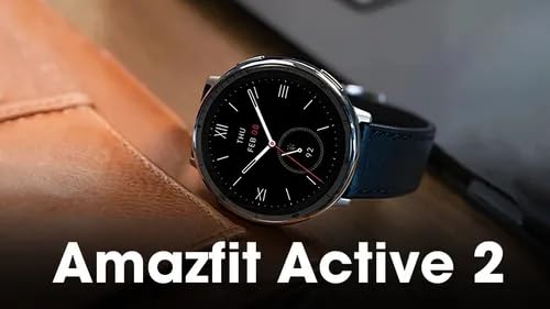 Relógio inteligente 44 mm Amazfit Active 2 Premium Edition, mapa GPS com orientação, bateria de 10 dias, modo de esportes 160 +, resistente à água, para Android e Apple iPhone (Black Leather Strap)