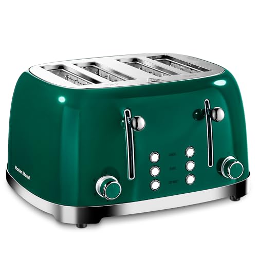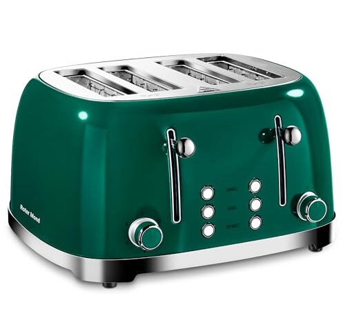 Roter Mond Torradeira de 4 fatias, torradeira retrô de aço inoxidável com função de cancelamento de degelo de bagel, 6 configurações de escurecimento, slot extre largo, verde, st033